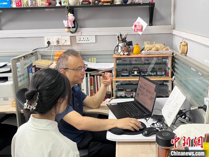 5月8日,江漢大學設計學院教授魏坤正在指導學生創(chuàng)作標識。武一力攝