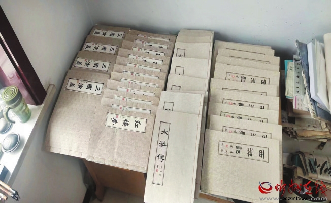 為了練字,他連手機也不買,惹得好多親朋好友找不到他。他橫下一條心,一個字可以練千遍、萬遍;一支毛筆握在手心不離不棄,天天寫,月月寫,年年寫,這一寫就寫了26年。為了寫好一個字,弄懂一個字,他不知道要練習(xí)多少遍,查多少次字典。由寫字到學(xué)文,他選擇了“四大名著”。古人筆錄者層出不群,“眼過千遍,不如手過一遍”。抄書不僅練習(xí)了書法,怡養(yǎng)性情,關(guān)鍵是補習(xí)了博大精深的中國文化。