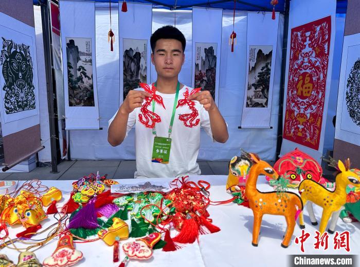 7月14日,甘肅省慶城職業(yè)中等專業(yè)學(xué)校學(xué)生張巖展示其剪紙作品。中新社記者 丁思 攝