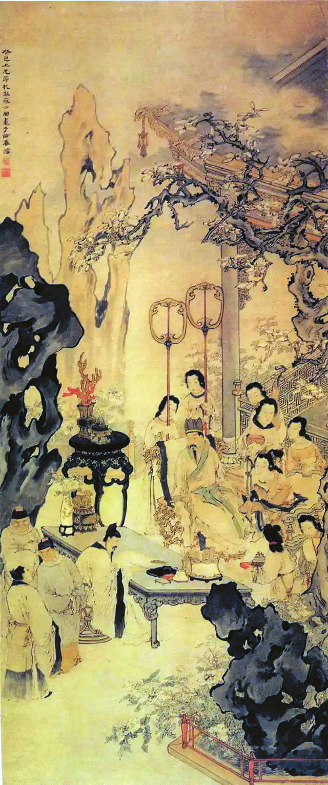 唐人李濬的《松窗雜錄》載,李白在長(zhǎng)安任翰林待詔時(shí),一日宮中牡丹綻放,唐玄宗與楊貴妃前往賞花,找來(lái)李龜年等人奏樂(lè)歌唱。但玄宗看了歌單,覺(jué)得都是些過(guò)氣的舊曲子,配不上眼前的名花美女,就讓李龜年趕快去找李白填新詞。當(dāng)時(shí)李白宿醉未醒,趁著酒力秉筆賦詞,當(dāng)場(chǎng)寫(xiě)就三首《清平調(diào)》歌頌楊貴妃的美貌。待李龜年唱完,楊貴妃很高興,還親自領(lǐng)唱了這三首歌。唐玄宗也吹著玉笛伴奏,由此奠定了李白在盛唐詩(shī)壇“一哥”的重要地位。李白創(chuàng)作樂(lè)府詩(shī)的事情被收入《舊唐書(shū)》:“玄宗度曲,欲造樂(lè)府新詞,亟召白,白已臥于酒肆矣。召入,以水灑面,即令秉筆,頃之成十余章,帝頗嘉之。”這段關(guān)于李白的佳話,在中國(guó)詩(shī)歌史上留下濃墨重彩的一筆。