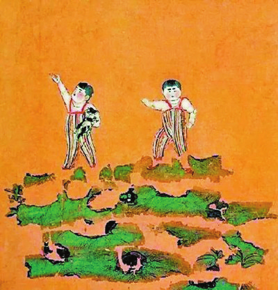 雙童圖 (唐) 新疆吐魯番市阿斯塔那187號(hào)墓出土