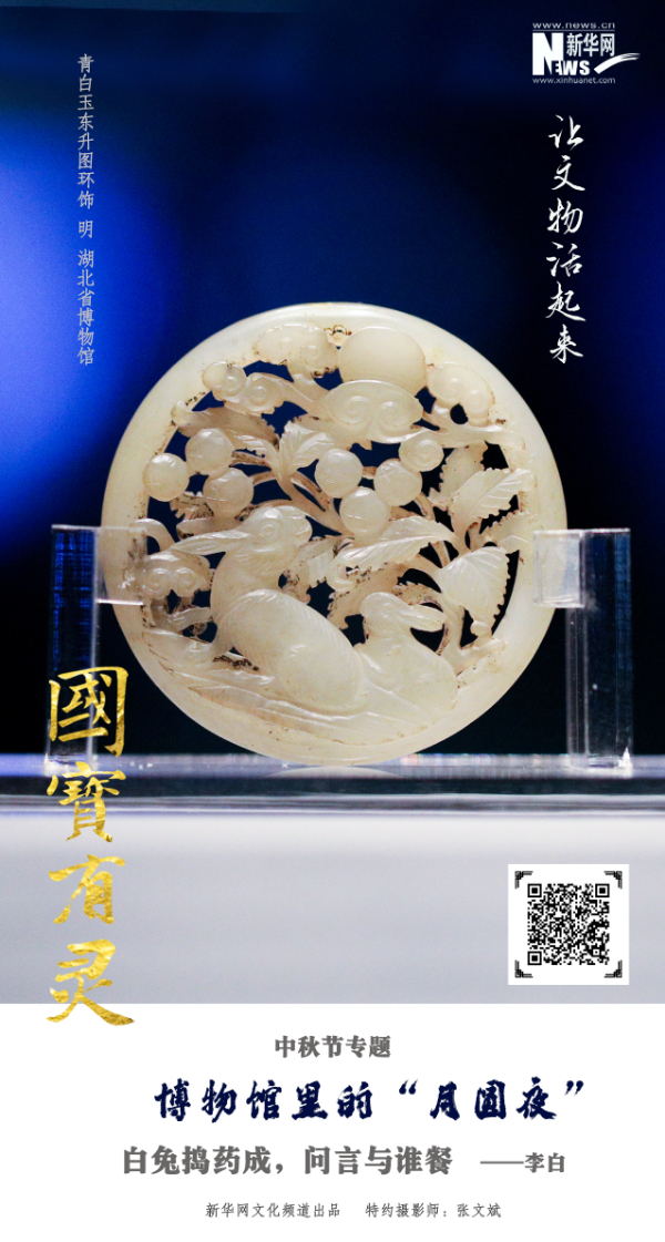 編者按:又是一年中秋節(jié)到,值此佳節(jié)到來之際,新華網(wǎng)文化頻道“國(guó)寶有靈”文化IP特推出中秋節(jié)專題《博物館里的“月圓夜”》,精選了六件帶有月亮、玉兔等元素的博物館中的文物,并配有與月有關(guān)的詩(shī)句,制作成了海報(bào),希望借由這些富有古老文化內(nèi)涵的國(guó)寶珍品,讓您感受到傳統(tǒng)中秋文化的魅力,為您的節(jié)日增添更多意趣,從中體悟到中華優(yōu)秀傳統(tǒng)文化的精髓所在,有所增益,有所感悟。新華網(wǎng)文化頻道在此祝您闔家團(tuán)圓,幸福安康!
