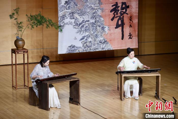 2024年12月,中國音樂學(xué)院“弦外有琴聲——古琴專場音樂會”,該校國樂系副教授黃梅(右)和碩士研究生李孟潔(左)演奏雙琴版《流水》。中新社記者 易海菲 攝