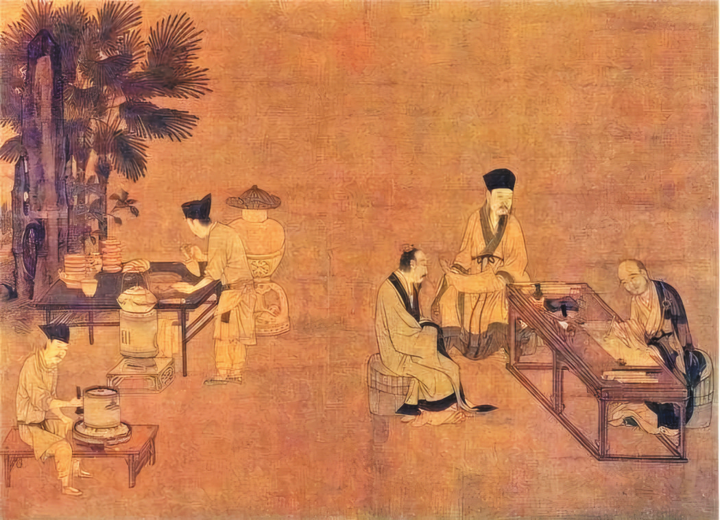 藝術(shù)為抹茶文化增添了無(wú)窮魅力。從南宋劉松年的《盧仝烹茶圖》,到宋人以茶汁為墨的“茶畫”,茶已然超越味蕾,升華為藝術(shù)。畫家以濃淡不同的茶汁在宣紙上揮毫潑墨,利用茶汁中的單寧酸,創(chuàng)造出變化莫測(cè)的色彩效果。