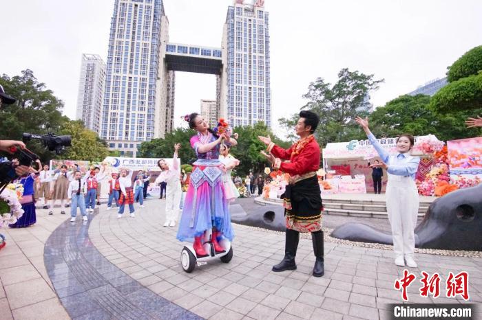 此外,在“廣西三月三·八桂嘉年華”開(kāi)幕式暨“四季村歌”活動(dòng)啟動(dòng)儀式上,廣西戲劇院“新劉三姐”扮演者陳慧身著絢麗民族盛裝,攜手多地游客共唱山歌,融合平衡車表演和戲曲唱腔的演繹方式,展現(xiàn)廣西山歌與時(shí)俱進(jìn)演變過(guò)程,為廣西“三月三”這場(chǎng)民族盛會(huì)添新潮。
