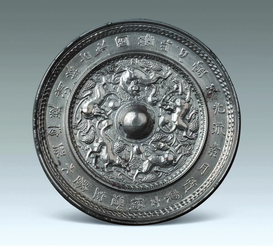 隋末唐初的一些銅鏡銘文,常將銅鏡比作明月,從中可以想見(jiàn)那時(shí)月亮的影子。有一些銅鏡可能是隋代鑄造的,到了初唐仍在使用。銅鏡紋飾布局仍沿襲漢鏡以來(lái)的歷史傳統(tǒng),鏡背內(nèi)區(qū)大多為動(dòng)物或植物紋飾,外區(qū)一周為銘文帶,陽(yáng)文楷書。鏡銘一般四字或五字為一句,用詞典雅,情真意切。雖然在這類鏡子背面看不到月亮的形象,但能感受到明月在當(dāng)時(shí)人們心中的崇高地位,所以才將日常所用的鏡子比作圓月。