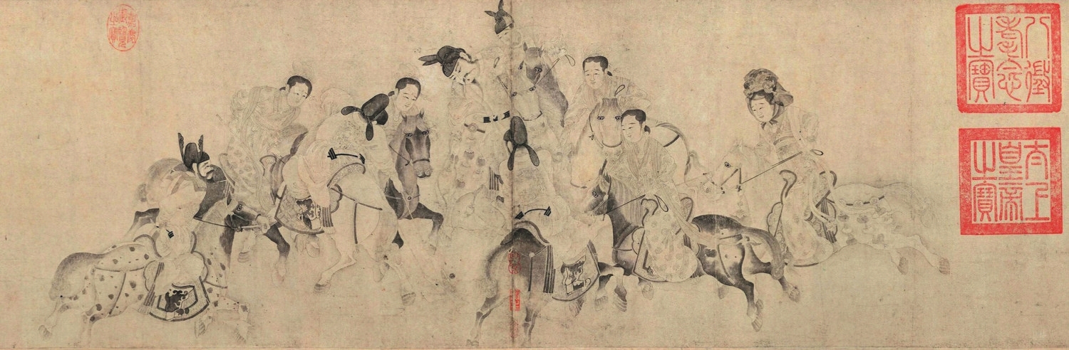 馬球的流行,也曾起到交流媒介的作用。遼代陳及之所繪《便橋會盟圖》,記錄了唐太宗和東突厥頡利可汗在渭水便橋會盟時,大唐和突厥進(jìn)行馬球比賽的場景。唐中宗時,吐蕃派使者迎接金城公主入藏,使團(tuán)中有馬球高手。彼時吐蕃請求與大唐比賽馬球,唐中宗派出的選手被吐蕃打敗,接著又派出當(dāng)時還是臨淄王的唐玄宗李隆基和嗣虢王李邕、駙馬楊慎交、駙馬武延秀等人再與吐蕃比賽,獲得勝利。據(jù)《封氏聞見記》載:“玄宗東西驅(qū)突,風(fēng)回電激,所向無前,吐蕃功不獲施。”
