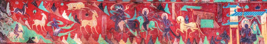 敦煌莫高窟第257窟的《鹿王本生圖》,是北魏時(shí)期的橫卷式壁畫,也是同類題材中保存最完整的連環(huán)畫,講述一只美麗的九色鹿王,救了一個(gè)不慎落入水中快被淹死的人,然而卻被此人出賣的故事。1981年上海美術(shù)電影制片廠推出的經(jīng)典動(dòng)畫片《九色鹿》,就是以此壁畫為原型。
