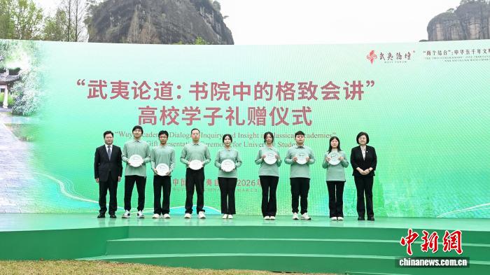 3月22日,第三屆武夷論壇在福建南平武夷山開幕。圖為參與論壇配套活動“武夷論道:書院中的格致會講”高校學(xué)子禮贈儀式。 (中國人民大學(xué)供圖)