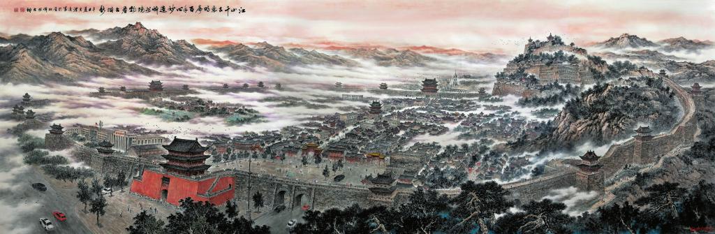 在堅持不懈的學習和創(chuàng)作過程中,殷渭凌逐漸意識到,書畫藝術有其自身規(guī)律,并不存在固定模式,對于一個書畫家來說,確定個人藝術走向非常重要,想要表現(xiàn)的主題、內容、情感最終會決定創(chuàng)作本身的價值。也正是清楚了這一點,殷渭凌將自己的創(chuàng)作素材鎖定在熟悉和熱愛的故土上。他從家鄉(xiāng)的自然造化中選取創(chuàng)作對象,提煉感情和思想,然后加以調整、升華,最終呈現(xiàn)給觀者,讓大家看到了獨具韻味的黃河、太行、長城、古鎮(zhèn)、雄關、窯洞、高原、古剎、佛塔等。