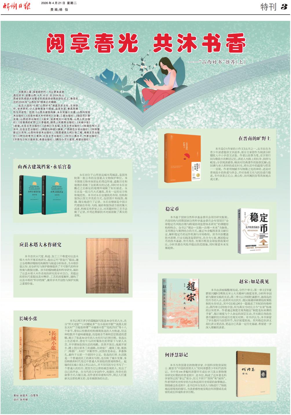 書香潤三晉,閱享新時代。為讓更多讀者遇見好書、讀懂山西,4月16日,在2026年山西省全民閱讀大會暨全民閱讀活動周啟動儀式上,備受關(guān)注的2026年“山西好書”榜單正式揭曉。