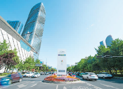位于成都天府大道的大運(yùn)會倒計時裝置。