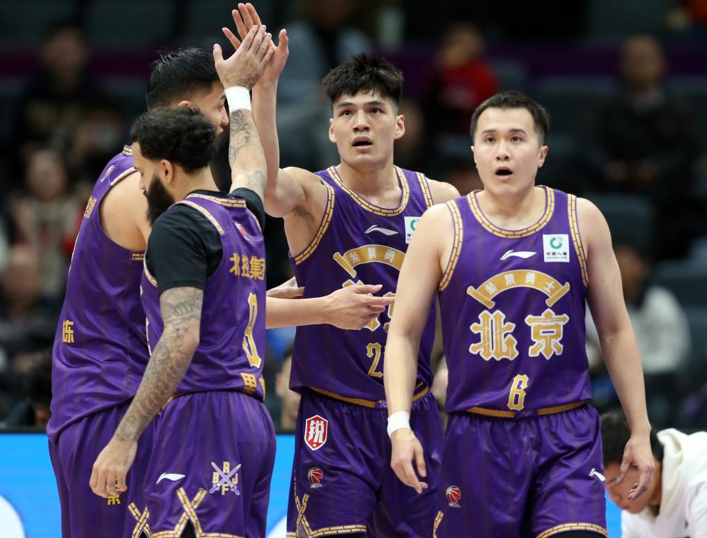 12月27日,北控隊(duì)球員陳國豪(右二)進(jìn)球后和隊(duì)友慶祝。新華社記者 雒圓 攝 客場面對北控,山東隊(duì)上半場壓制對手,建立了8分的領(lǐng)先優(yōu)勢,但易邊后北控隊(duì)迅速追回分差,兩隊(duì)展開拉鋸戰(zhàn)。 常規(guī)時(shí)間的最后20秒,高詩巖先是造成犯規(guī)并且三罰全中,幫助山東隊(duì)追平比分,接著又在北控隊(duì)進(jìn)攻回合機(jī)智搶斷,將比賽拖入加時(shí)賽。 加時(shí)賽中,山東隊(duì)陶漢林、賈誠先后六犯離場,六人得分上雙的客隊(duì)最終憾負(fù)。北控隊(duì)鄒雨宸得到全場最高的26分。