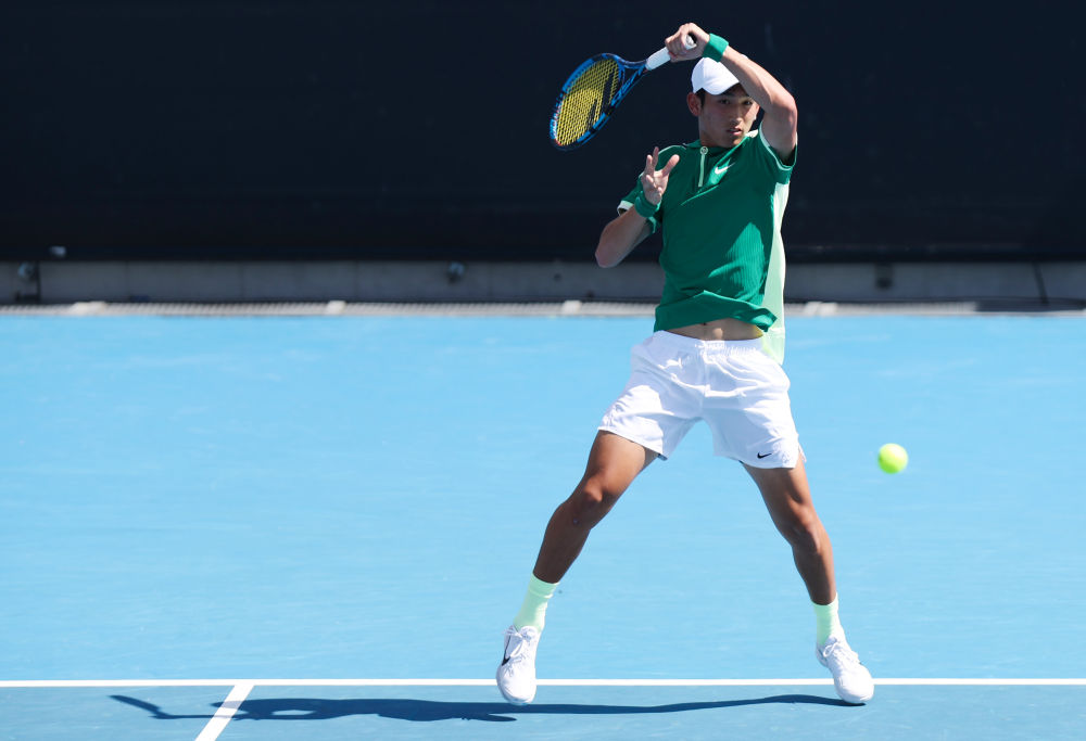 1月16日,商竣程在比賽中回球。新華社記者 馬平 攝
