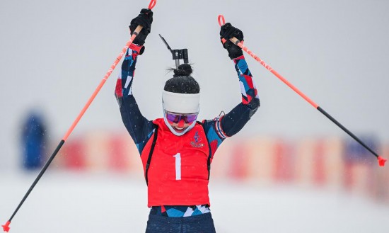 20日,河北隊選手褚源蒙克服降溫降雪天氣的影響,憑借全場射擊零脫靶的出色表現,奪得第十四屆全國冬季運動會冬季兩項公開組女子12.5公里集體出發(fā)項目金牌。
