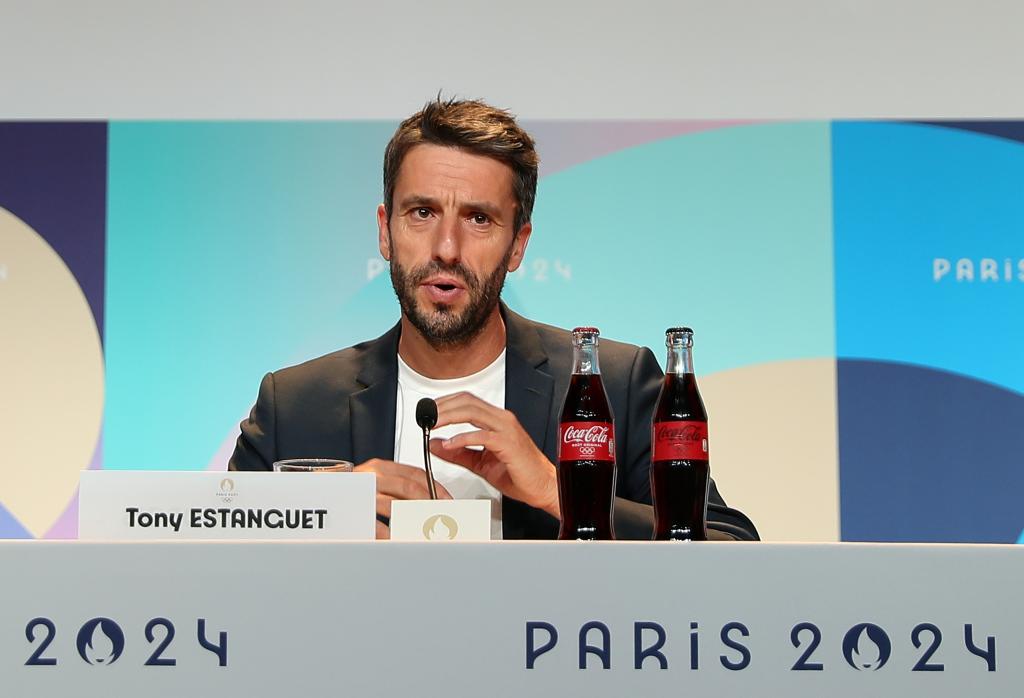 7月21日,巴黎奧組委主席托尼·埃斯坦蓋在發(fā)布會上發(fā)言。新華社記者 王東震 攝