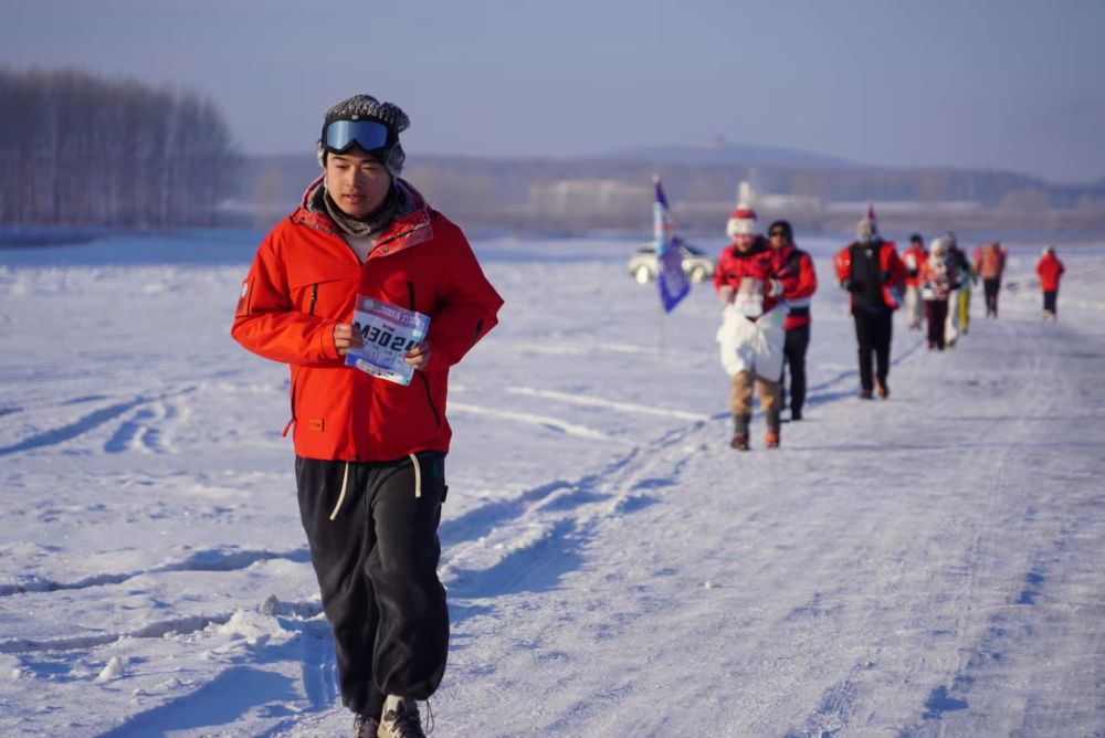 “第一次在‘華夏東極’參加冰上馬拉松,伴著朝陽(yáng)跑進(jìn)新的一年,太有意義了!”來(lái)自天津的跑步愛(ài)好者劉海艷說(shuō)。