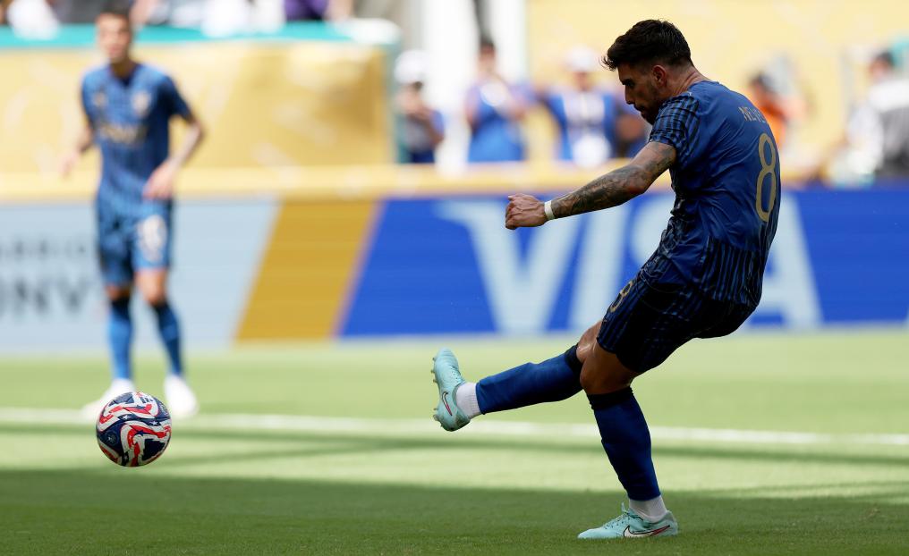 6月18日,利雅得新月隊球員魯本·內(nèi)維斯在比賽中主罰點球破門。新華社記者 李明 攝