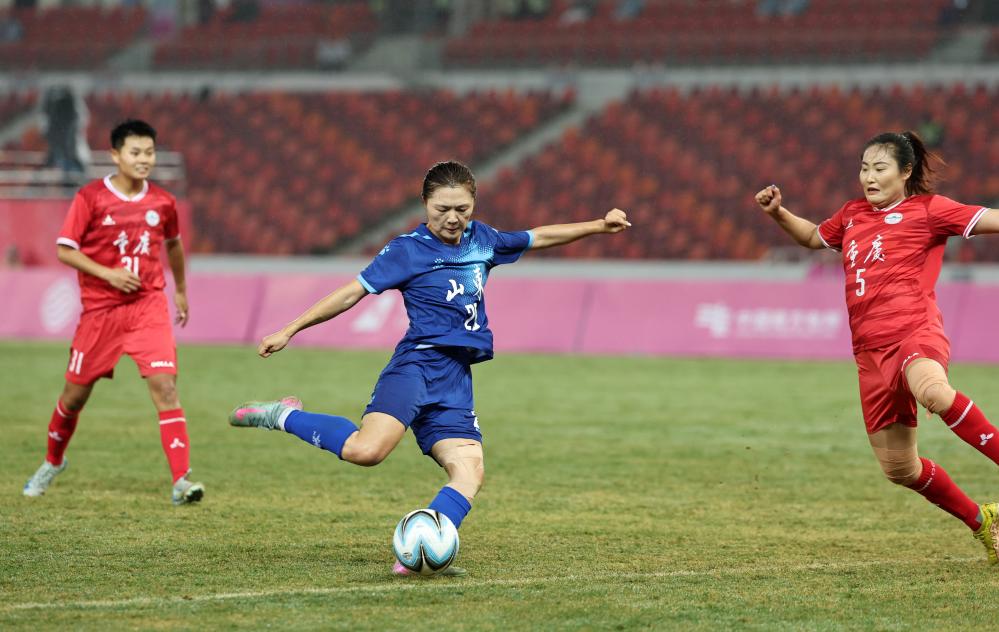新華社廣州11月4日電(記者張武岳、劉宏宇)第十五屆全國運(yùn)動會足球項目女子成年組比賽4日在廣東佛山開賽。A組揭幕戰(zhàn)中,廣東隊展現(xiàn)出強(qiáng)勁實力,5:0大勝內(nèi)蒙古隊。B組的山東隊則是剛剛開場就有進(jìn)球,最終3:0戰(zhàn)勝重慶隊。