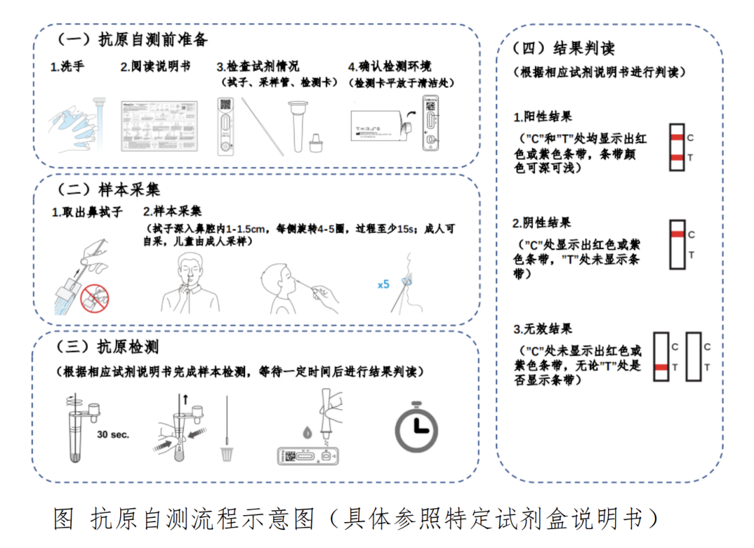 社區(qū)居民有自我檢測(cè)需求的,可通過零售藥店、網(wǎng)絡(luò)銷售平臺(tái)等渠道,自行購(gòu)買抗原檢測(cè)試劑進(jìn)行自測(cè)。為確保采樣檢測(cè)質(zhì)量,居民需認(rèn)真閱讀說明書,按照規(guī)定的要求和流程,規(guī)范地進(jìn)行采樣、加樣、結(jié)果判讀等操作。