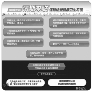 中國疾控中心衛(wèi)生應急中心有關專家介紹,洪澇災害易引起飲水水源污染,使災區(qū)感染性腹瀉、痢疾等水源性和食源性疾病暴發(fā)風險增加。另外,洪水淹沒糞池、下水道等,導致動物尸體腐敗,蚊蠅等媒介生物孳生,血吸蟲、乙腦等蟲媒及自然疫源性傳染病發(fā)生風險會相應增加。