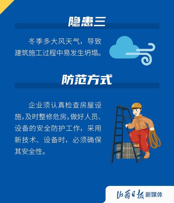 進(jìn)入冬季,氣溫下降,晝夜溫差大,冷暖變化不規(guī)律,一些事故發(fā)生概率會因為季節(jié)性因素而升高,影響企業(yè)的安全生產(chǎn),下面這些隱患需注意。