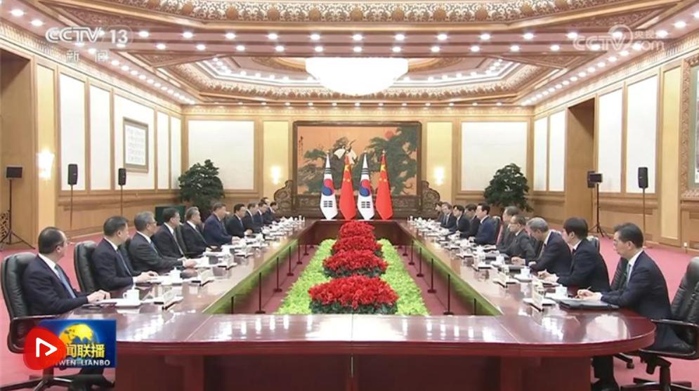 習近平指出,當前世界百年變局加速演進,國際形勢更加變亂交織。中韓在維護地區(qū)和平、促進全球發(fā)展方面肩負重要責任,有廣泛利益交集,應(yīng)當堅定站在歷史正確一邊,作出正確戰(zhàn)略選擇。80多年前,中韓兩國付出巨大民族犧牲,贏得抗擊日本軍國主義的勝利。今天更應(yīng)攜手捍衛(wèi)二戰(zhàn)勝利成果,守護東北亞和平穩(wěn)定。作為經(jīng)濟全球化的受益者,中韓要共同反對保護主義,踐行真正的多邊主義,為推進平等有序的世界多極化、普惠包容的經(jīng)濟全球化作出貢獻。