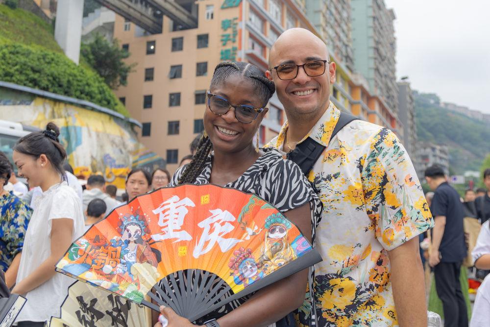△2025年10月,重慶渝中,加拿大游客在李子壩游玩。