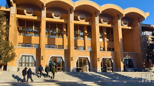 △專題研討班學(xué)員正在進(jìn)入中央黨校禮堂。(總臺央視記者程鋮拍攝)