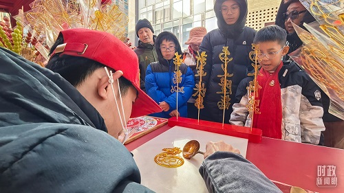 總書記察看街區(qū)風貌和各式年貨攤位,同現(xiàn)場群眾親切交流。他愉快地向大家講起年少時多次到隆福寺的情景,還購買了特色食品和文創(chuàng)產(chǎn)品。