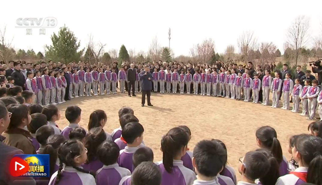 3月30日,黨和國家領導人習近平、李強、趙樂際、王滬寧、蔡奇、丁薛祥、李希等來到北京市昌平區(qū)百善鎮(zhèn)參加首都義務植樹活動。這是習近平同在場的干部群眾、少先隊員親切交談。
