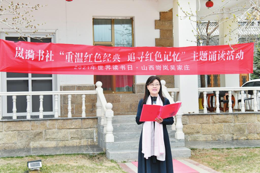 近日,為響應(yīng)忻州市第十屆讀書(shū)月活動(dòng)的號(hào)召,岢嵐縣嵐漪書(shū)社在新農(nóng)村吳家莊舉辦“重溫紅色經(jīng)典,追尋紅色記憶”主題誦讀活動(dòng)。來(lái)自全縣各行各業(yè)的讀書(shū)愛(ài)好者,在美麗的新農(nóng)村,聆聽(tīng)紅色故事,感悟家國(guó)情懷。作家彭圖,詩(shī)人梁生智、李霖,中國(guó)朗誦協(xié)會(huì)會(huì)員趙旭和嵐漪書(shū)社的社員們一起,誦經(jīng)典、品書(shū)香、話讀書(shū)、談理想。岢嵐縣委宣傳部、縣文聯(lián)向誦讀者贈(zèng)送《趙家洼的消失與重生》《文化岢嵐》《六個(gè)黨員的故事》等書(shū)籍。