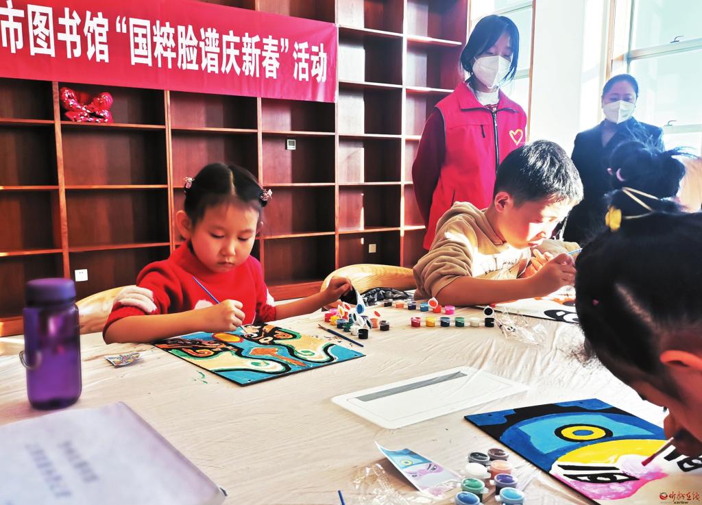 小朋友在參加“國(guó)粹臉譜慶新春”活動(dòng)。