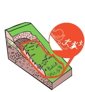2.遭遇高速滑坡時,如滑坡呈整體滑動時,迅速抱住身邊的樹木等固體物體,也可以躲避在結(jié)實的障礙物下。不能將避災場地選擇在滑坡的上坡或下坡。