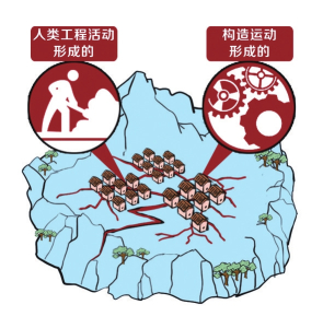 地裂縫的成因有兩大類,第一種是內(nèi)動力,由構(gòu)造運動形成的,比如地震等自然因素;另一種是外動力,由人類工程活動形成的,比如松散土體潛蝕、膨脹土脹縮等形成地裂縫。還有一種是人類過量抽汲承壓水導致的地裂縫。