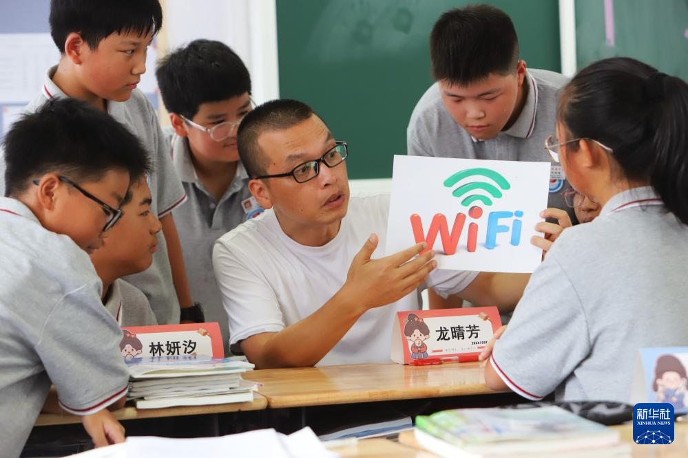 9月11日,浙江省臺州市路橋區(qū)蓬街中學(xué)老師為學(xué)生講解網(wǎng)絡(luò)安全知識。(新華社發(fā) 蔣友青 攝)