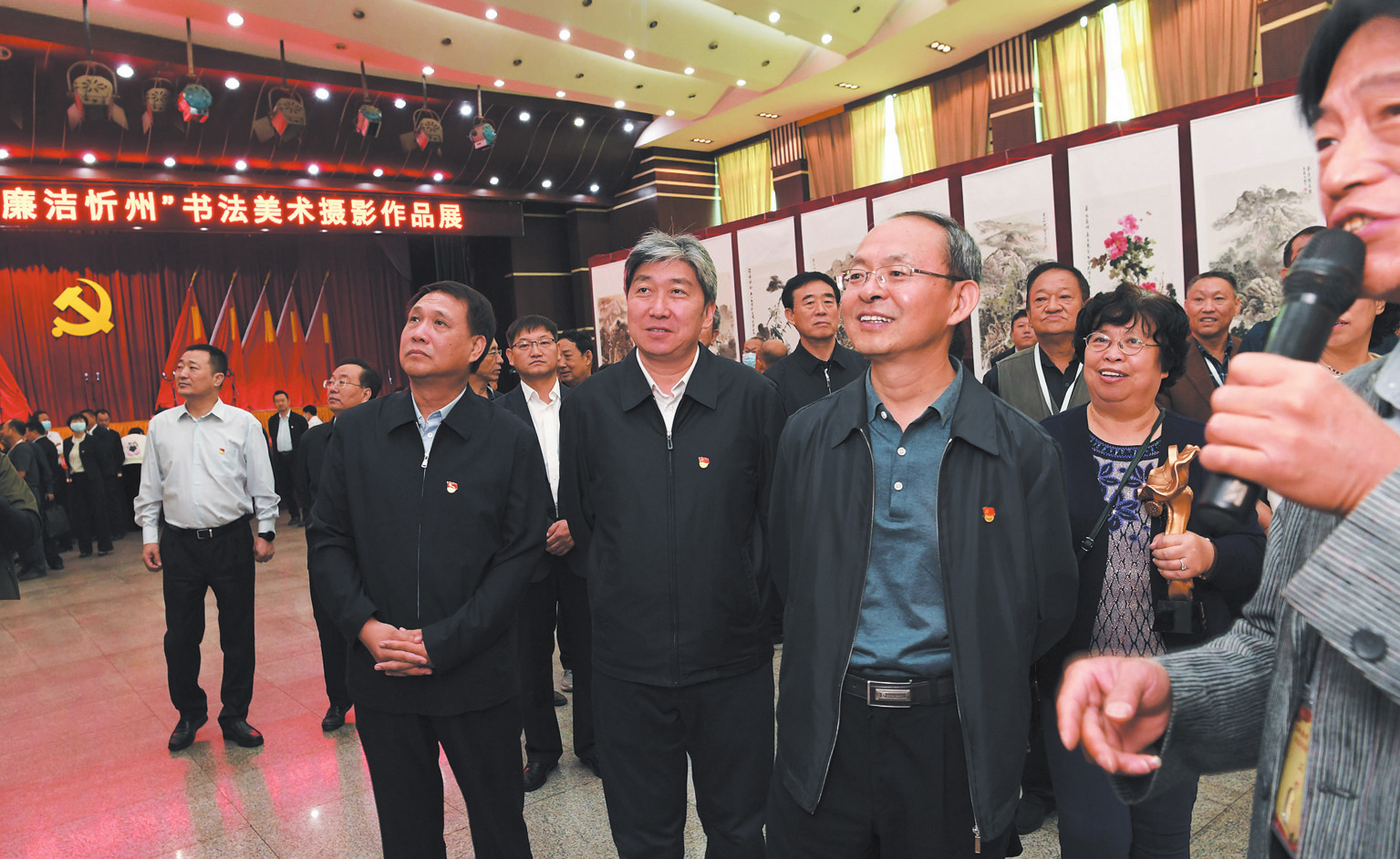 開展儀式上,市領(lǐng)導(dǎo)為迎國慶“清風(fēng)雅頌·廉潔忻州”書法美術(shù)攝影作品展一等獎、二等獎、三等獎的獲獎作者頒發(fā)了獎杯和證書。