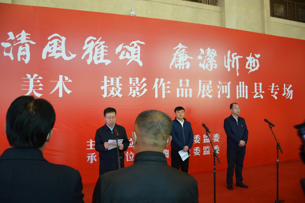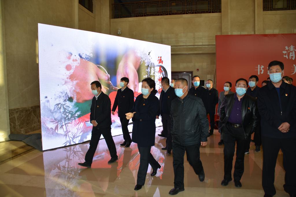翰墨丹青揚正氣,清風(fēng)廉韻沁民心。11月10日,由忻州市紀委監(jiān)委主辦,河曲縣紀委監(jiān)委承辦的“清風(fēng)雅頌·廉潔忻州”書畫美術(shù)攝影展河曲縣專場,在臨隩公園美術(shù)館開展。市政協(xié)副主席、縣委書記邊東圣出席儀式并作重要講話,縣委副書記、縣長任鴻賓宣布“清風(fēng)雅頌·廉潔忻州”書法美術(shù)攝影展開展,縣委常委、縣紀委書記、縣監(jiān)委主任張永明主持開展儀式。縣四大班子領(lǐng)導(dǎo)和其他縣處級領(lǐng)導(dǎo),全縣各鄉(xiāng)鎮(zhèn)、居民辦、黨群、政府、發(fā)改、農(nóng)口、政法、宣傳文衛(wèi)各口黨員干部及全體紀檢監(jiān)察干部共計180余人參加了開展儀式。
