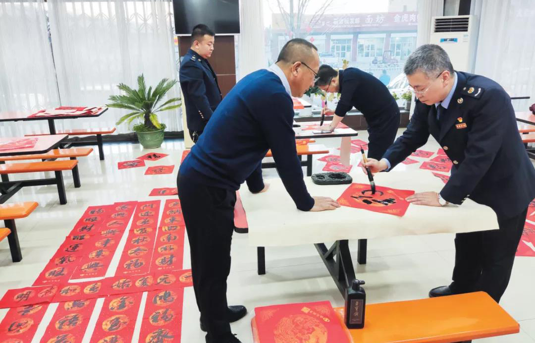 春節(jié)前,偏關縣稅務局組織開展了“寫春聯、送祝福”活動,動員局里的書法愛好者齊聚辦稅服務廳,現場揮毫潑墨,為前來辦稅的納稅人繳費人書寫對聯,送上新春祝福,借助春聯宣傳減稅降費政策。