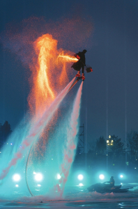 ⑤1月31日晚,運(yùn)城鹽湖景區(qū),民間藝人表演飛天火壺。