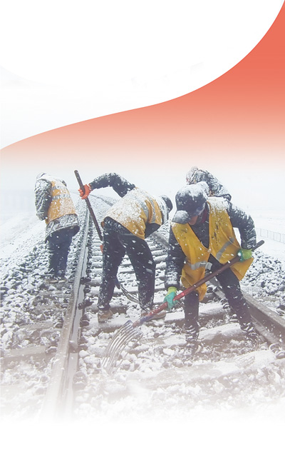 中國(guó)鐵路青藏集團(tuán)公司職工冒雪對(duì)整修后的道床進(jìn)行清理。馬祎俊攝