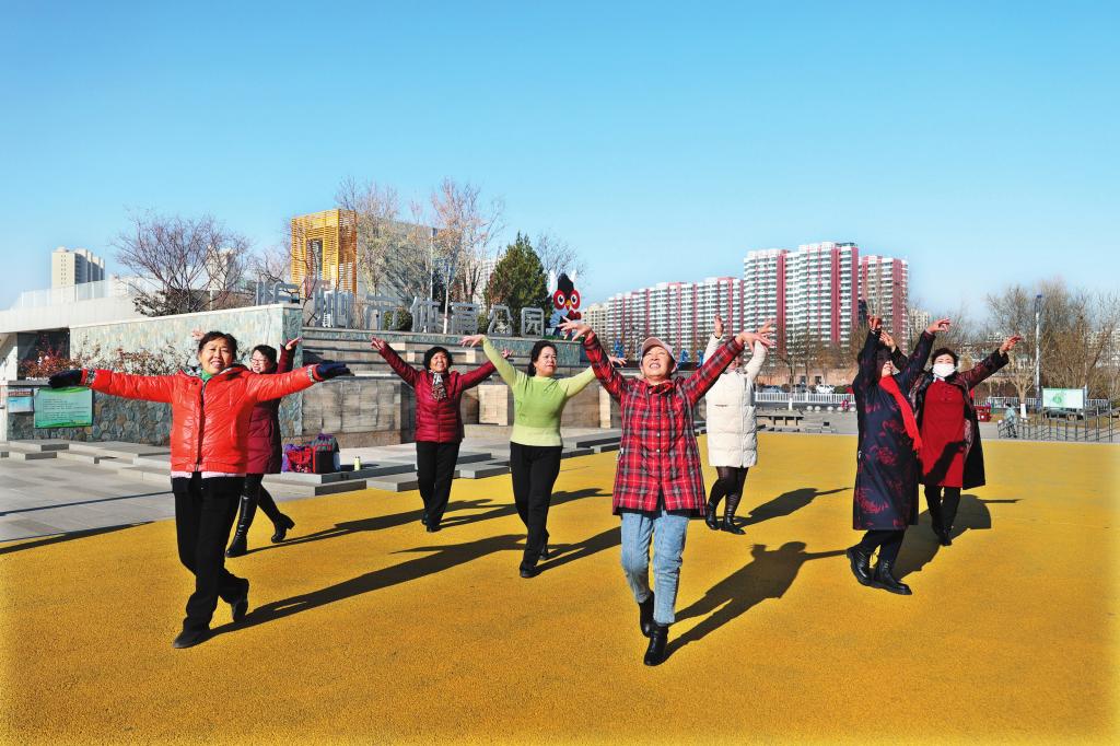 11月24日,舞蹈愛好者們?cè)谑畜w育公園廣場(chǎng)上翩翩起舞。近年來,全民健身理念在我市深入人心,越來越多的市民從體育運(yùn)動(dòng)的旁觀者變身參與者。 (張存良 攝)