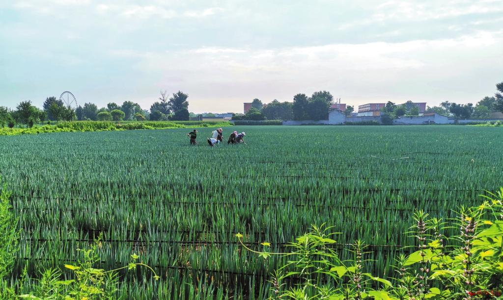 8月16日,忻府區(qū)二十里鋪村村民正在蔥田里勞作。該村利用當?shù)胤N植資源豐富、交通便利等區(qū)位優(yōu)勢,積極調(diào)整農(nóng)業(yè)產(chǎn)業(yè)種植結(jié)構(gòu),引導農(nóng)民發(fā)展特色種植業(yè),進一步拓寬農(nóng)民增收致富渠道。 (宮清華攝)