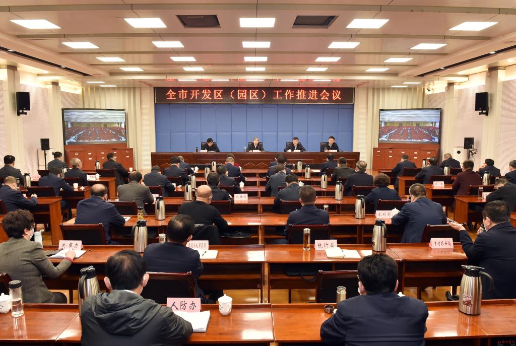溫建軍總結全市開發(fā)區(qū)(園區(qū))2021年工作,安排部署2022年重點工作。馮曉磊 攝