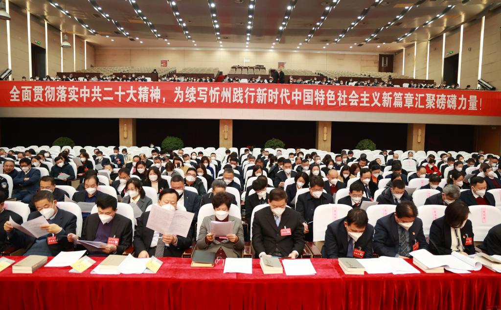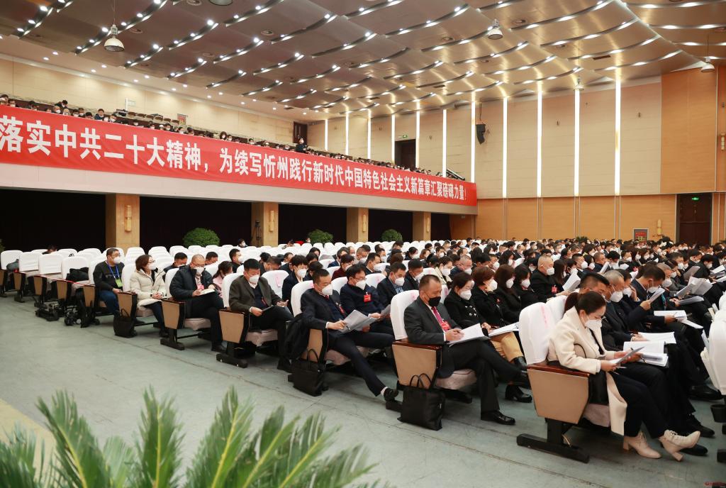 晉控集團忻州會議中心千人會堂內(nèi)外布置簡樸,莊嚴隆重。會場內(nèi),燈光璀璨,氣氛熱烈。大會主席臺正中懸掛著政協(xié)會徽,在十面鮮艷紅旗的映襯下熠熠生輝。會場后方高高懸掛著大紅條幅:全面貫徹落實中共二十大精神,為續(xù)寫忻州踐行新時代中國特色社會主義新篇章匯聚磅礴力量!