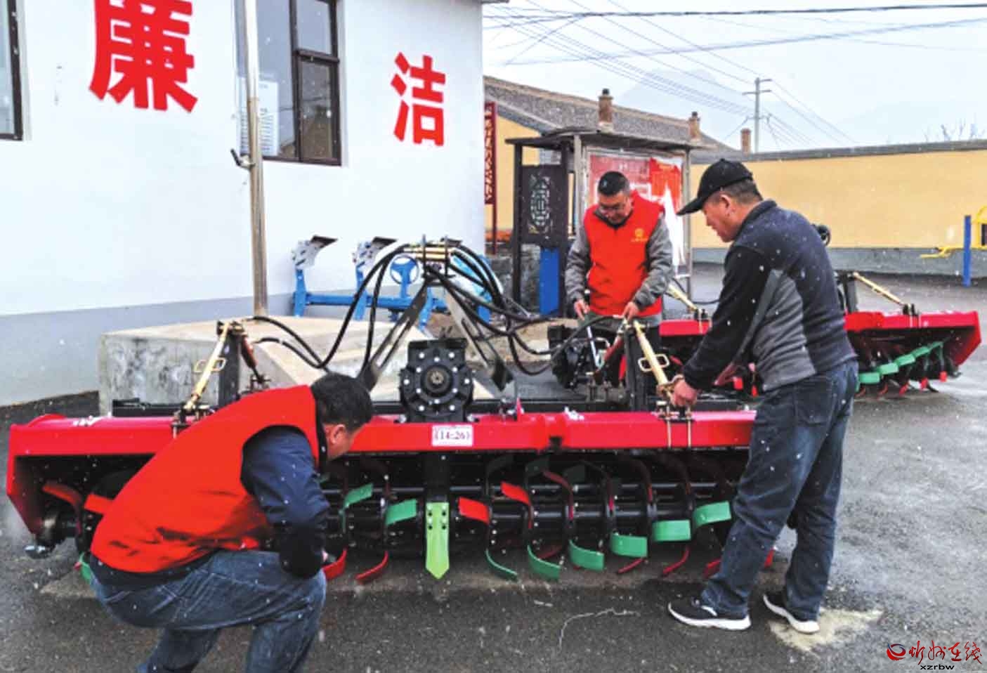 工作隊員與農(nóng)機技師一起仔細(xì)檢查旋耕機等設(shè)備的零部件、傳動系統(tǒng)及液壓裝置,排查隱患,調(diào)試機械性能,確保農(nóng)機以最佳狀態(tài)投入春耕。隊員們還向農(nóng)戶講解農(nóng)機日常保養(yǎng)知識,提升村民科學(xué)使用農(nóng)機的能力。(曾 陽 攝)
