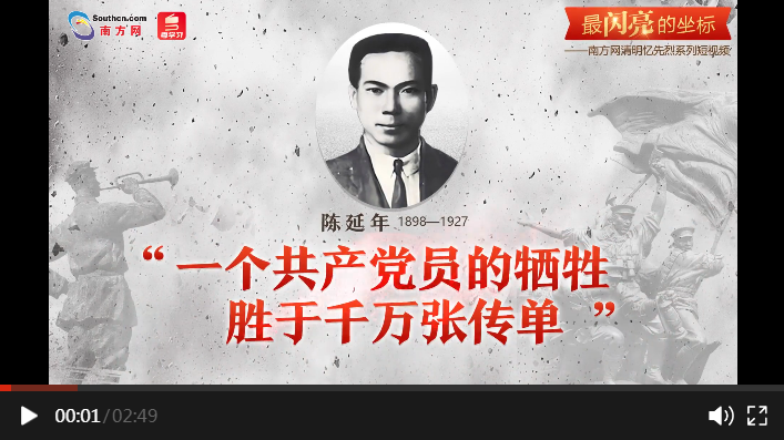 編者按:清明憶英烈,忠魂貫長(zhǎng)空。4月1日至5日,南方網(wǎng)、粵學(xué)習(xí)客戶端策劃推出“最閃亮的坐標(biāo)”系列短視頻,通過挖掘廣東革命烈士的光輝事跡,與大家一起緬懷英烈、學(xué)習(xí)英烈。今天推出第一篇《陳延年:一個(gè)共產(chǎn)黨員的犧牲勝于千萬(wàn)張傳單》。