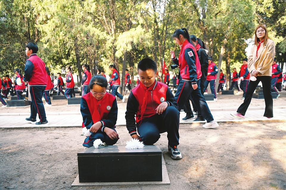 3月30日,省城迎澤區(qū)雙塔南巷小學組織學校師生前往太原市雙塔革命烈士陵園開展清明祭掃活動,深切緬懷革命先烈。本報記者王瑞瑞攝