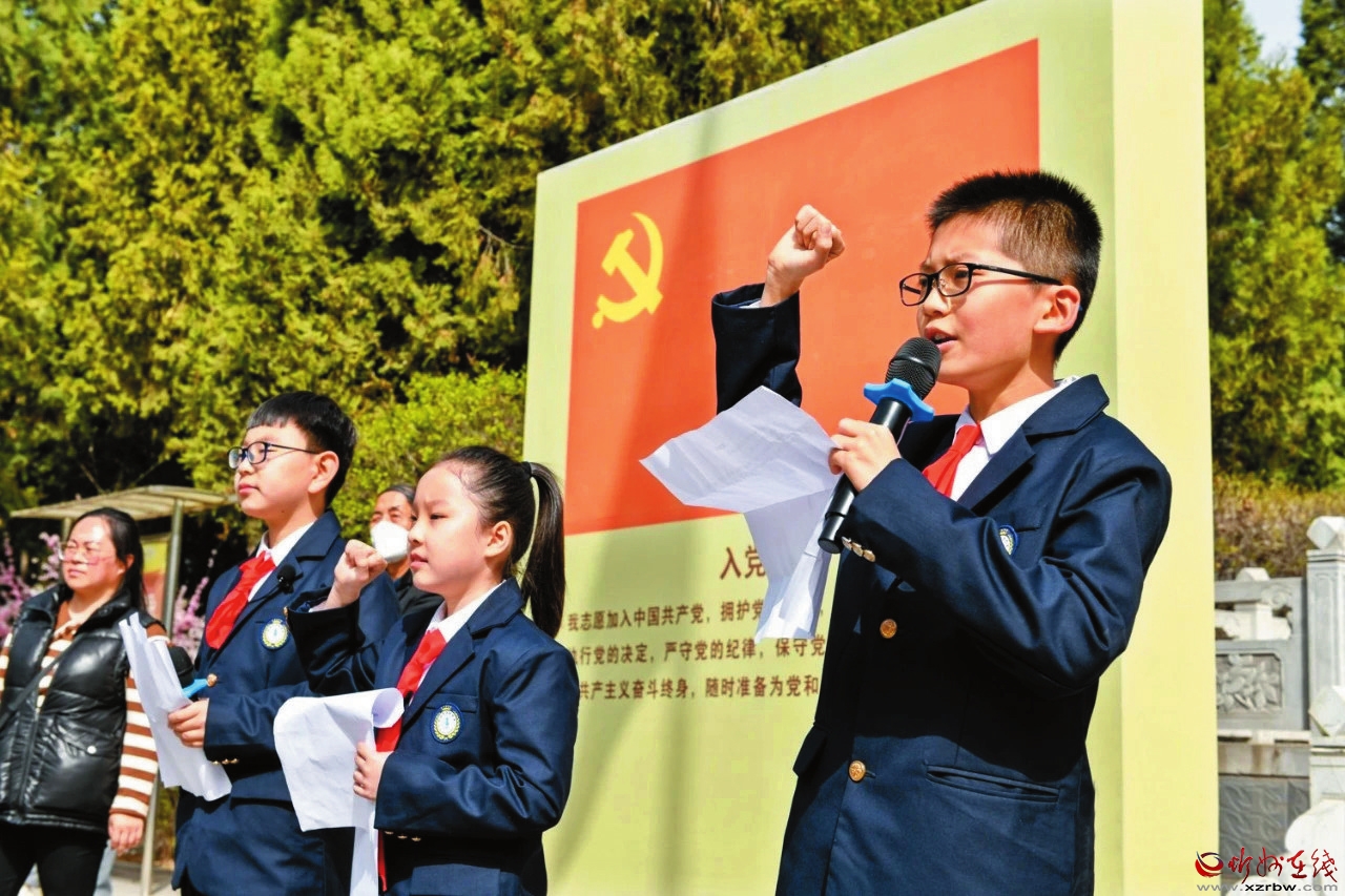 在西河頭地道戰(zhàn)紀念館英雄紀念碑前,大家聆聽革命先烈故事,向烈士紀念碑敬獻花圈,寄托對革命先烈的無限哀思和敬仰之情。 本報通訊員攝