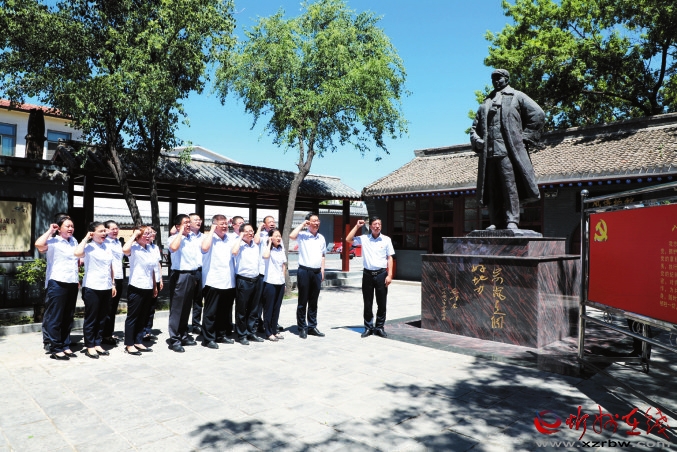 近日,農(nóng)行忻州分行黨委、忻州分行機(jī)關(guān)黨委組織黨員干部分赴岢嵐、右玉、五臺、興縣等紅色教育基地開展主題黨日活動。圖為該行黨委書記帶隊(duì)赴岢嵐縣宋家溝村開展“追尋紅色足跡,弘揚(yáng)偉大建黨精神”主題黨日活動。 (李良辰攝)